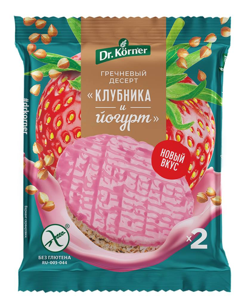 купить Бакалея Dr.korner Злаковый десерт клубника и йогурт гречневый 34 гр. (17шт./блок) в интернет магазине