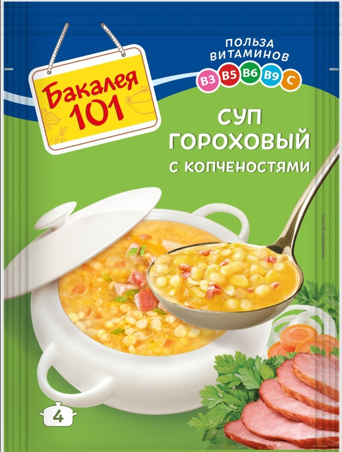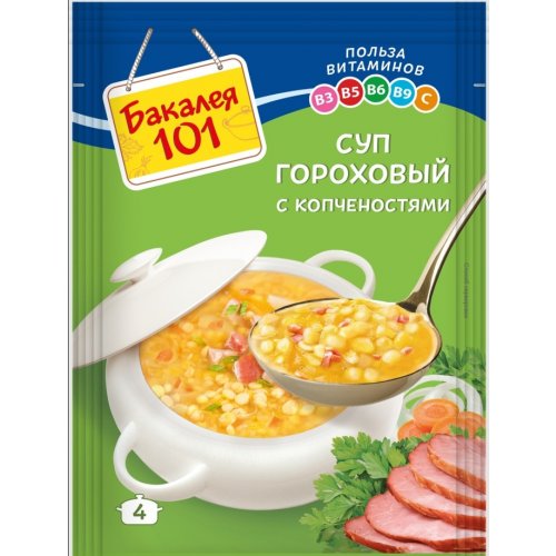 купить Бакалея Бакалея 101 Суп Бакалея 101 Гороховый с копченостями 65 гр.(25)/в пал. 24*9 в интернет магазине
