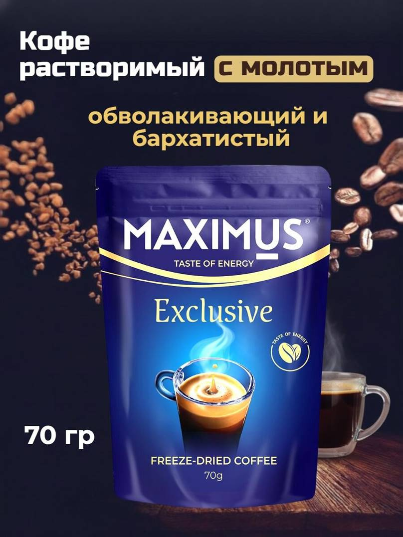 купить Кофе Maximus Сублимированный с доб.молотого "Exclusive" 70 гр. м/у (32) в интернет магазине