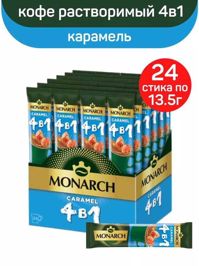 купить Кофе Monarch 4 в 1 CARAMEL (Карамель) (24х13,5 гр.х10 бл)/99 * в интернет магазине