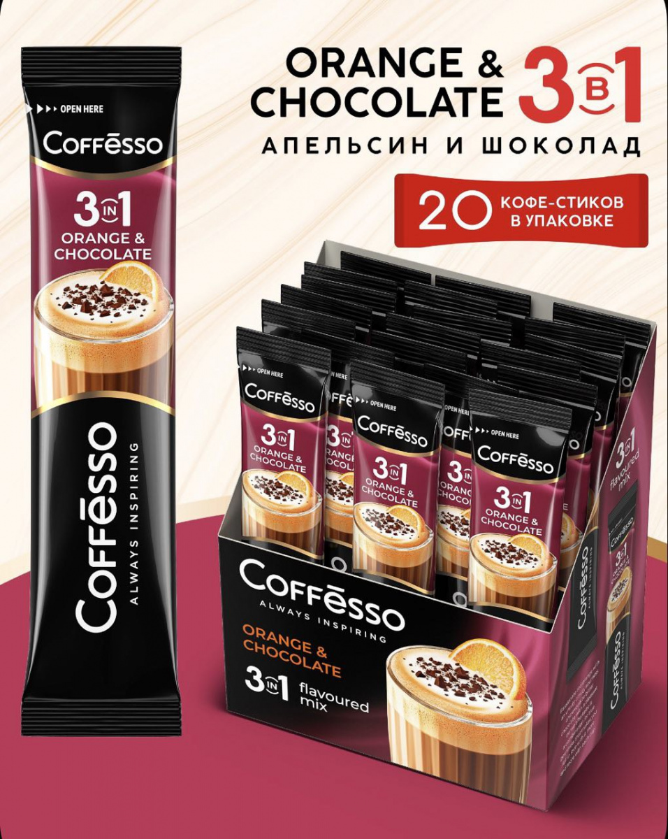 купить Кофе Coffesso Напиток 3 в 1 "Orange & Chocolate" раств. 20*14 гр. (10) 102923 в интернет магазине