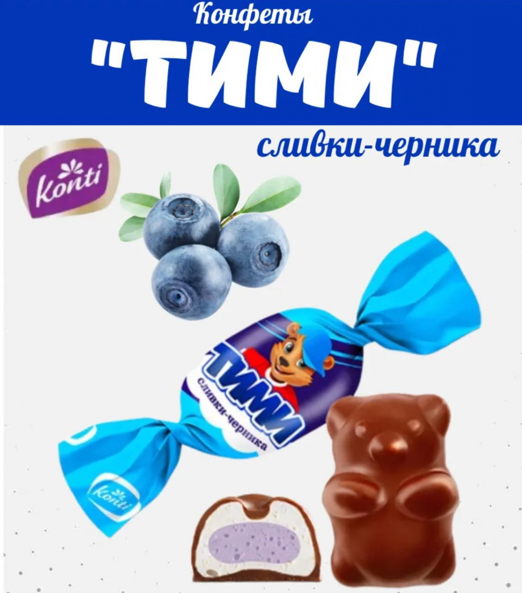 купить Кондитерские изделия Konti конфеты весовые "Тими" Сливки-Черника, (4 кг) фасовка по 1 кг/80 в интернет магазине
