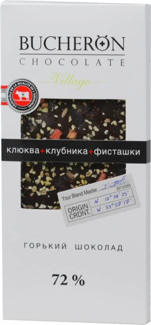 купить Кондитерские изделия Bucheron VILLAGE (с окном) шоколад Горький с клюквой, клубникой и фисташками 85 гр х 10 шт картон (6) 1209 в интернет магазине