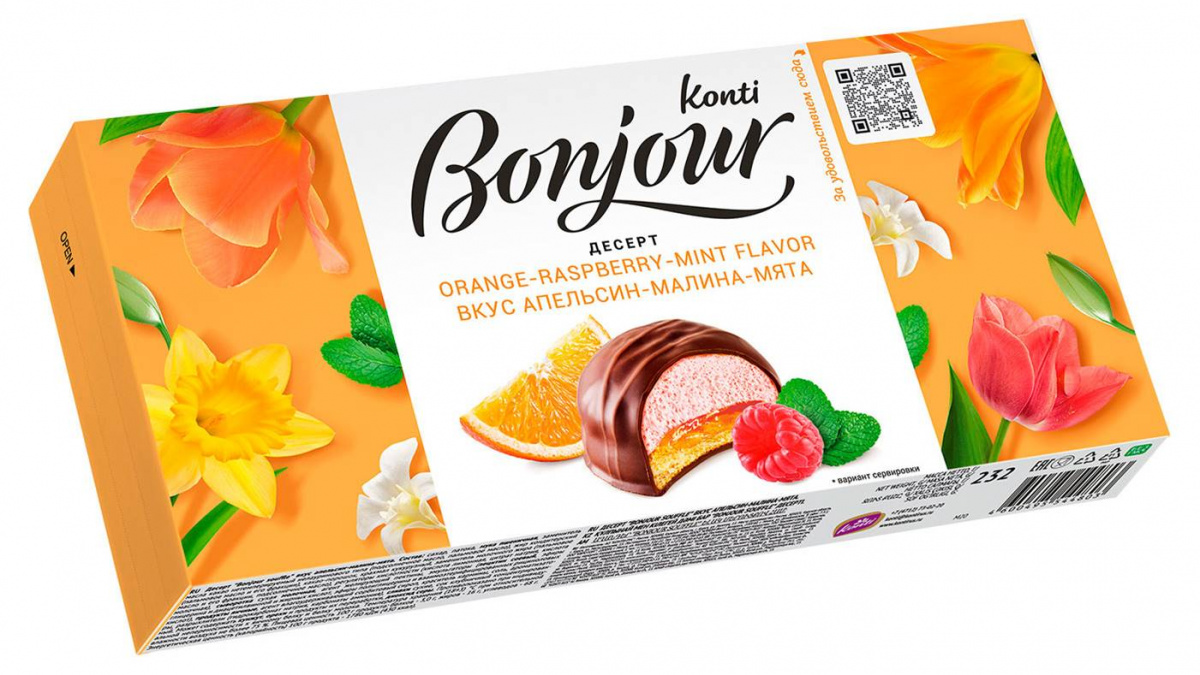 купить Кондитерские изделия Konti Сложный десерт "Бонжур",232 гр.,Апельсин-Малина-Мята (9)/78 в интернет магазине