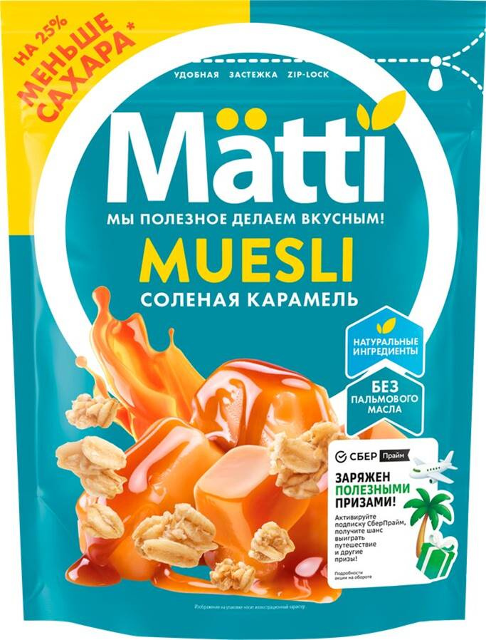 купить Кондитерские изделия Matti Готовый завтрак MATTI Мюсли "Соленая карамель" 250 гр, дой-пак (14)/ в пал.90 в интернет магазине