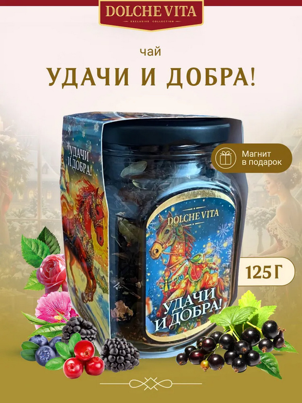 купить Чай Dolche vita Дольче Вита Стекло "Удачи и Добра!" (Лошадь) с магнитом черный с добавками 125 гр. (6) в интернет магазине