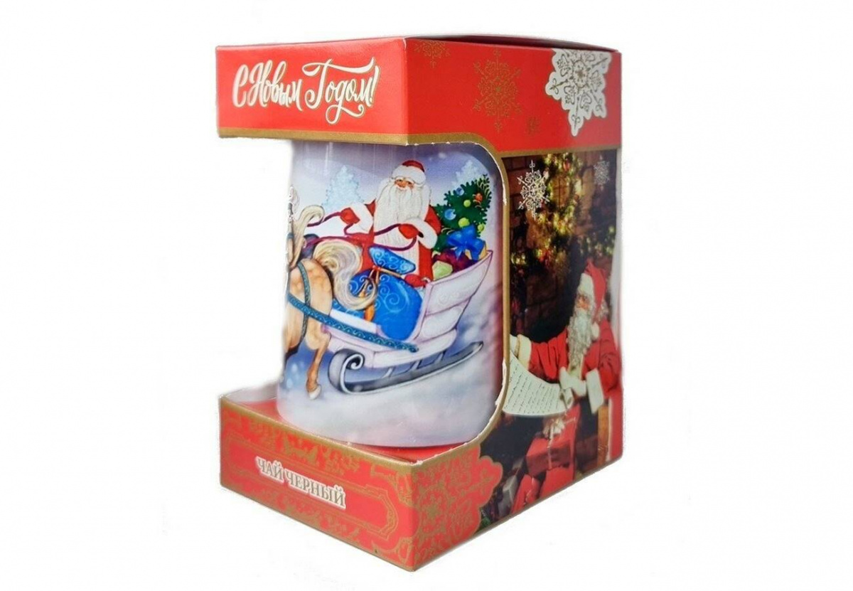 купить Чай Abigail (К2 1598) Кружка в картоне "С Новым Годом" Дед Мороз на тройке черный 50 гр. (12) в интернет магазине