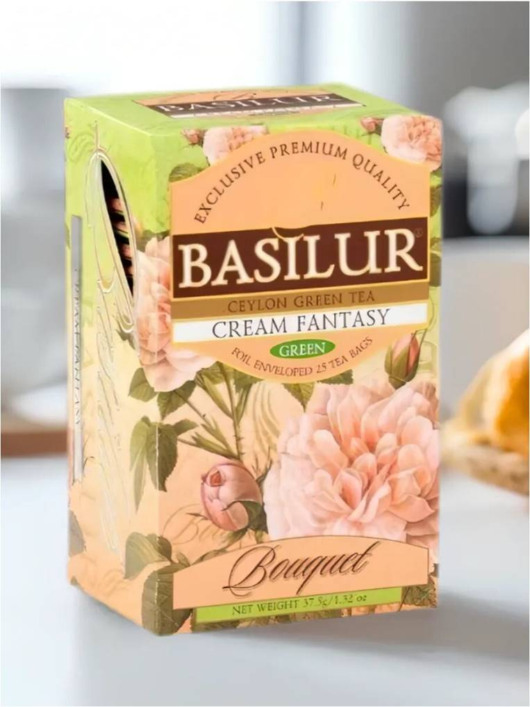 купить Чай Basilur Букет "Кремовая фантазия" 25 сашет.*1,5 гр.,зеленый с аром.ягод, картон (12) (70153) в интернет магазине