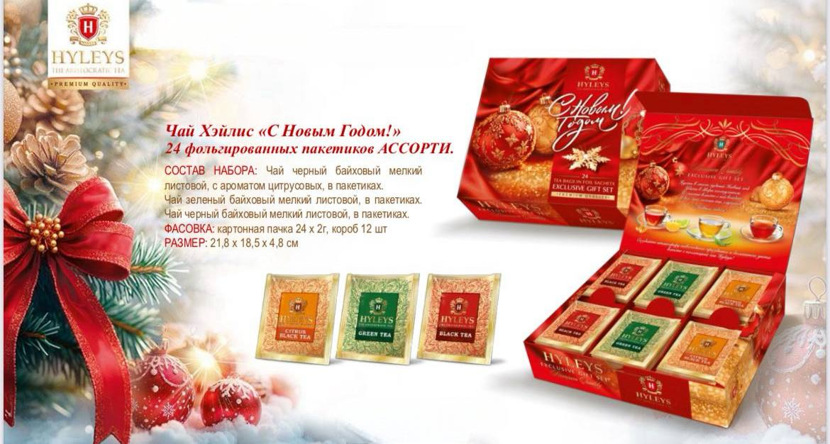 купить Чай Hyleys "С Новым Годом" Красный фон, Ассорти ф/п 24*2гр. (черн.,черн. с ар. цитрус.,зел) (12) (13453) в интернет магазине
