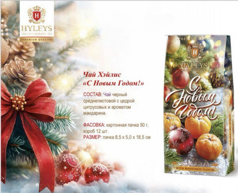 купить Чай Hyleys "С Новым Годом!"(Мандарины) 50 гр.,картон (черный с цедрой цитрусовых) (12) (13941) в интернет магазине