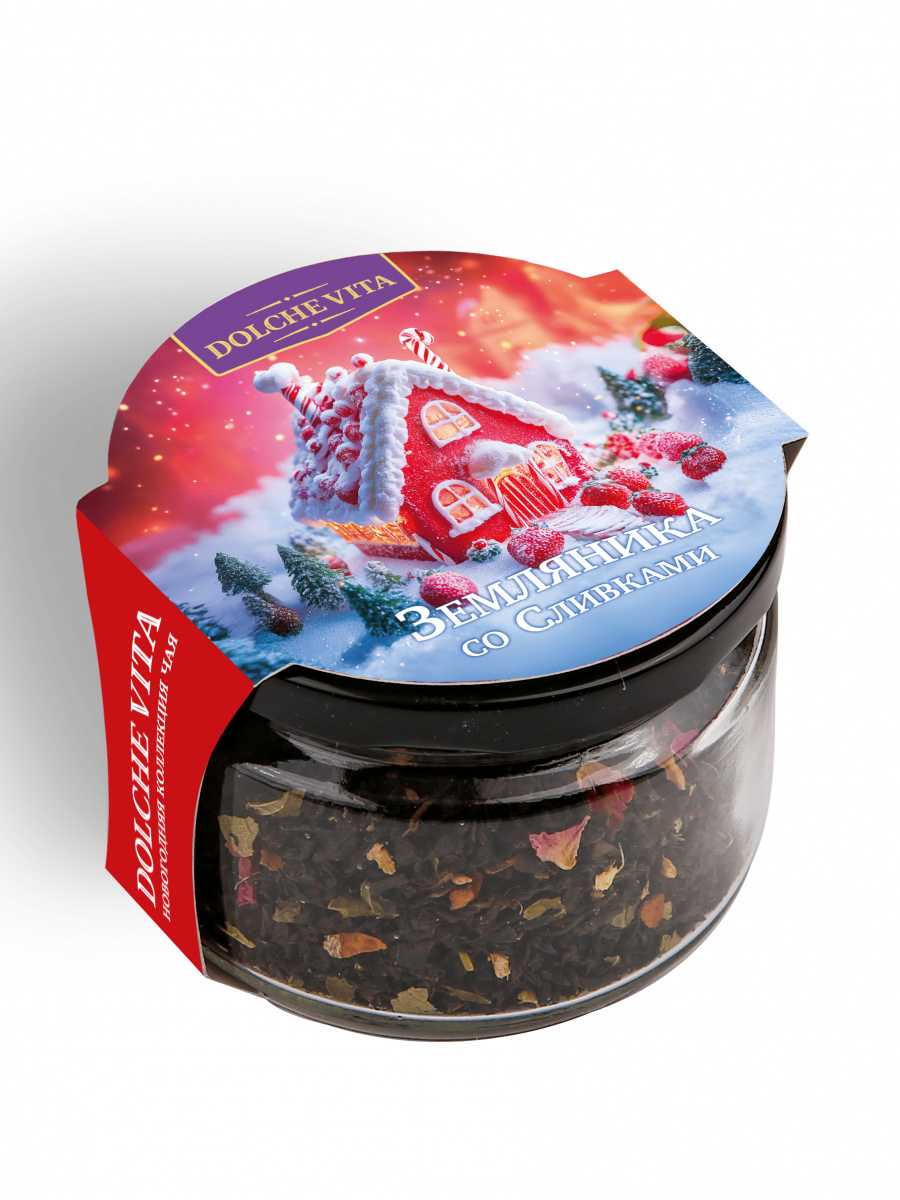 купить Чай Dolche vita Дольче Вита Стекло "Земляника со сливками" с магнитом черный с добавками 50 гр. (8) в интернет магазине