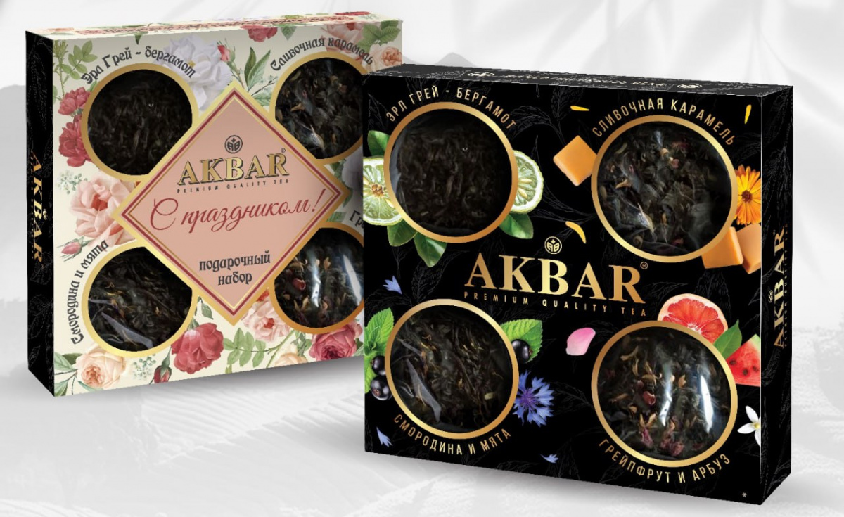 купить Чай Akbar Акбар НАБОР подарочный 4 вида * 40 гр. "С Праздником!" (160 гр) (6) Обечайка NEW в интернет магазине