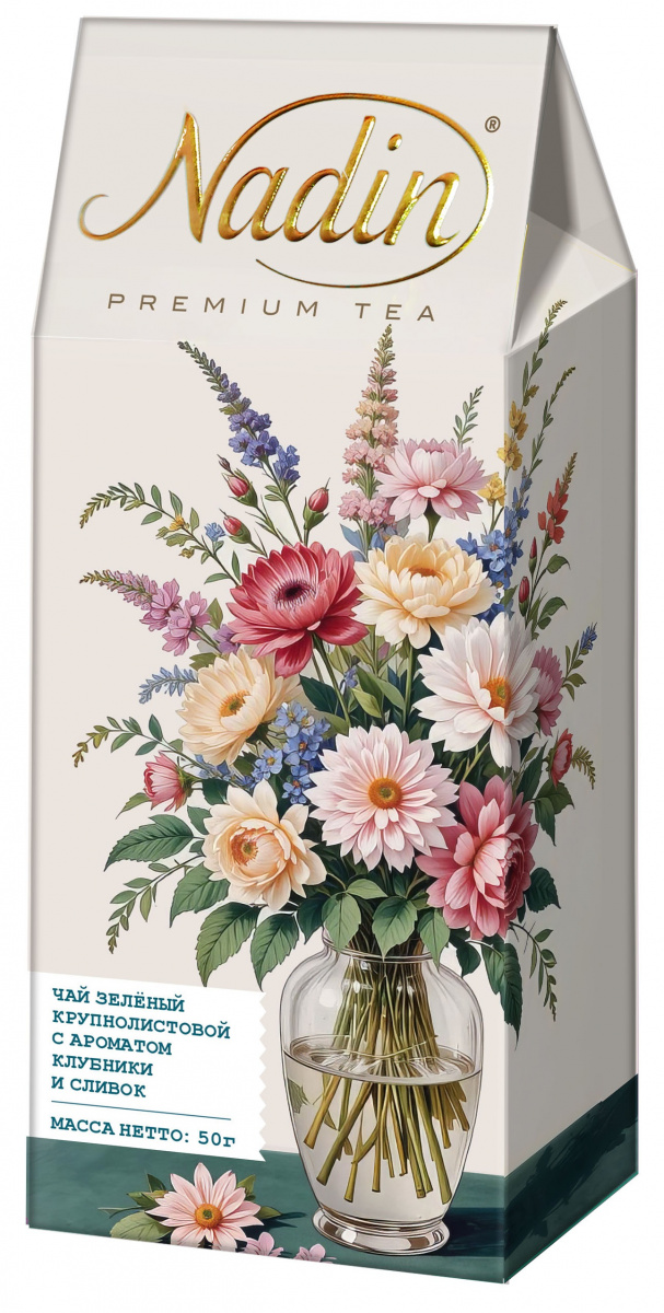 купить Чай Nadin "Праздничный букет" зеленый кр.лист с аром. клубники и сливок 50 гр. картон (12) в интернет магазине